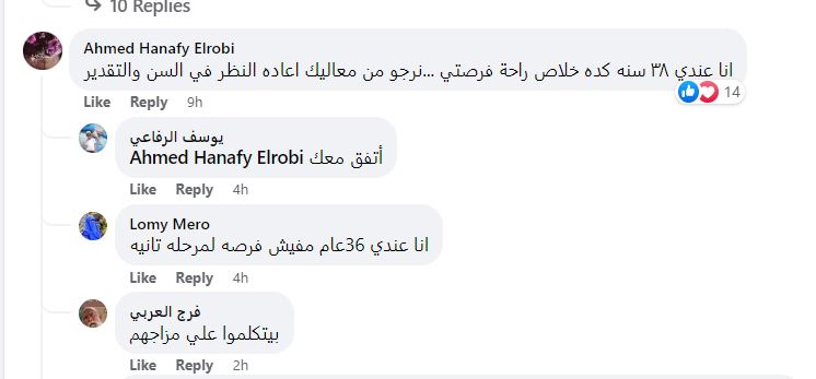 وكتب أحمد البرعي معلم، عبر موقع التواصل الاجتماعي فيس بوك: أنا عندي 38 سنه كده خلاص فرصتي راحت، مناشدًا الدكتور طارق شوقي، وزير التربية والتعليم: نرجو من معاليك إعادة النظر في السن والتقدير.