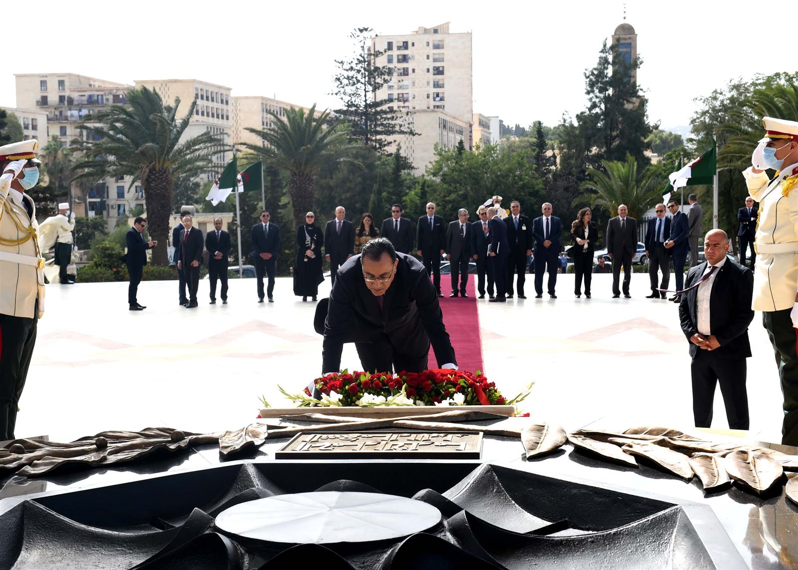 رئيس الوزراء يزور مقام الشهيد بالعاصمة الجزائرية ويضع إكليلا من الزهور تكريما لأرواح الشهداء