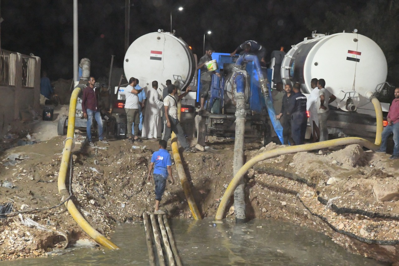 10 صور ترصد بدء إصلاح خط طرد مياه الصرف الصحي بقنا