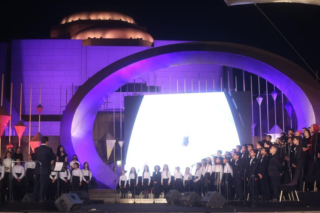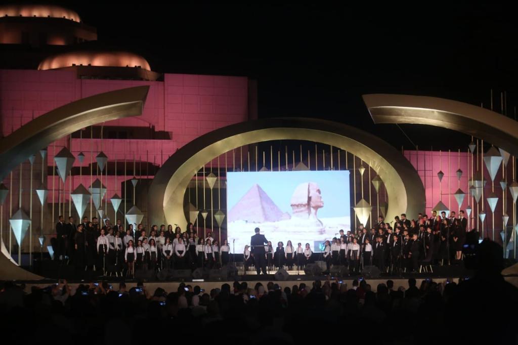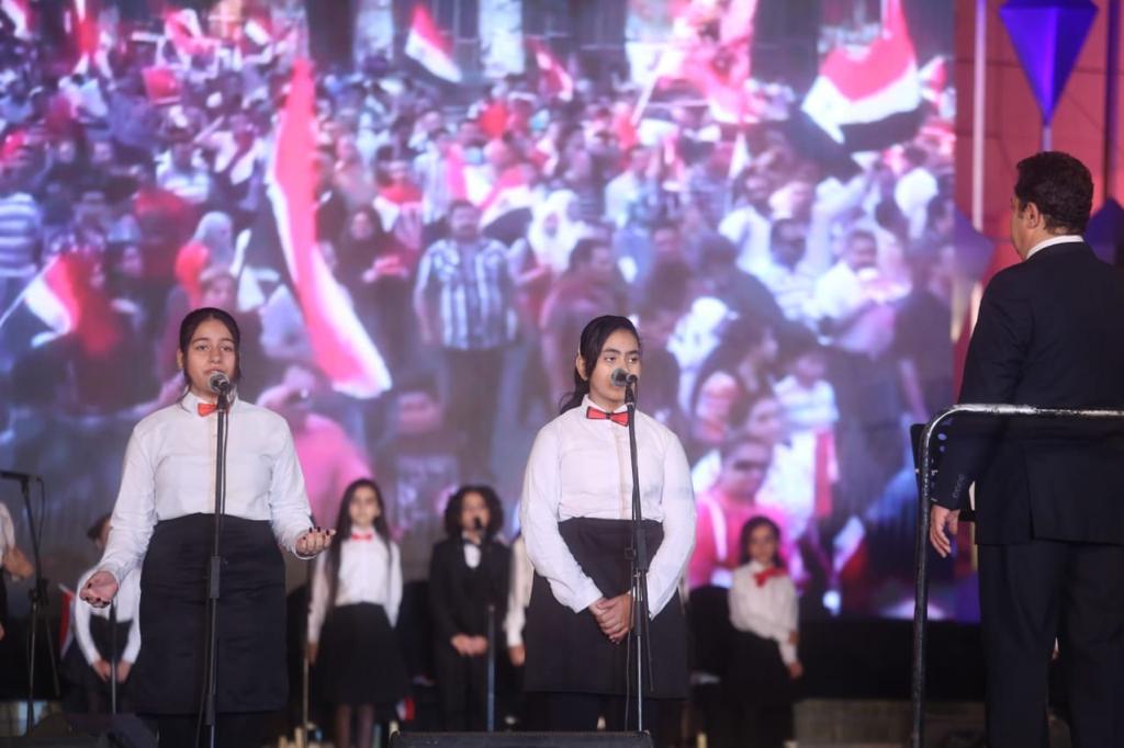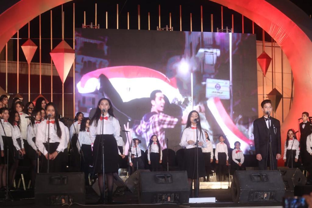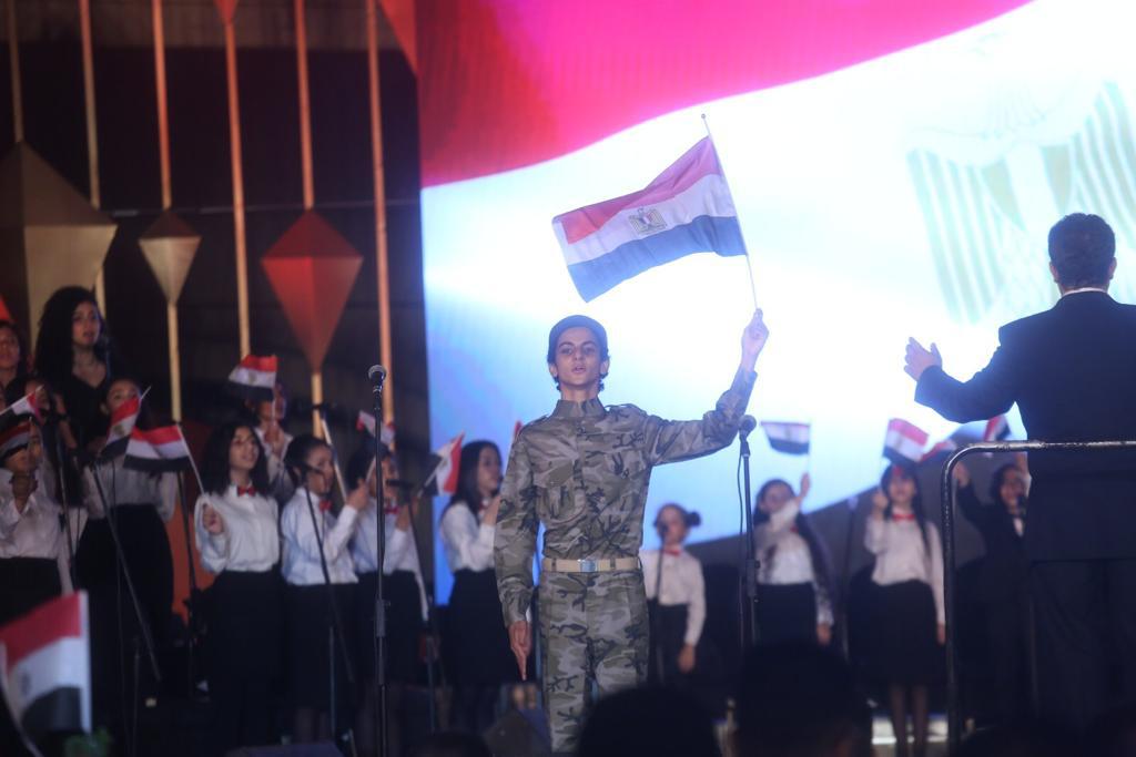 ووسط مشاعر حماسية تغنى كورال اطفال وشباب مركز تنمية المواهب بقيادة المايسترو الدكتور محمد عبد الستار وبرؤية فنية واخراج الفنان عبد الوهاب السيد بوطنيات مصرية استدعت عاطفة الفخر والاعتزاز وتفاعل معها الحضور الذى ضم مختلف الشرائح العمرية والاجتماعية وتضمنت فيديو لبيان وقف العمل بالدستور الذى القاه الرئيس عبد الفتاح السيسي الى جانب مؤلفات مصر التي في خاطري، حبيبتي من ضفايرها، تترى بداية ونهاية مسلسل أرابيسك، تتر مسلسل العائلة، آهين يا دي الزمن، أقوى من الزمان، ع الدوار، المصريين أهم، يا عروس النيل، مصانع الرجال، شعر الشهيد المنسي، ابن الشهيد، تعظیم سلام، يا حبيبتي يا مصر، بوابة الحلواني، الله ع المستقبل، مصر يا أعز الحبايب، مصر عادت شمسك الذهب، راحة فين يا عروسة، إذا مصر قالت نعم، تحيا مصر والنشيد الوطنى.. أداء رحمة ضاحي، أحمد مجدي، مريم حنفي، أحمد الحسيني، إسراء عصام، مهدي محمد، مروان، محمود البطران. جيوفاني، هاجر سعيد، ملك سعيد، شمس الأسواني، مازن علوان، أدهم الجوهري، مصطفى ناصر، فاروق محمد، أحمد محمود، كلارا صموئيل، لوجين تامر، محمد يسري، رحمة عصام، ساندرا هشام، زیاد، ملك أحمد، ريم أسامة، مريم مجدي، غادة سيد، مصطفى ناصر، يوسف الراوي.