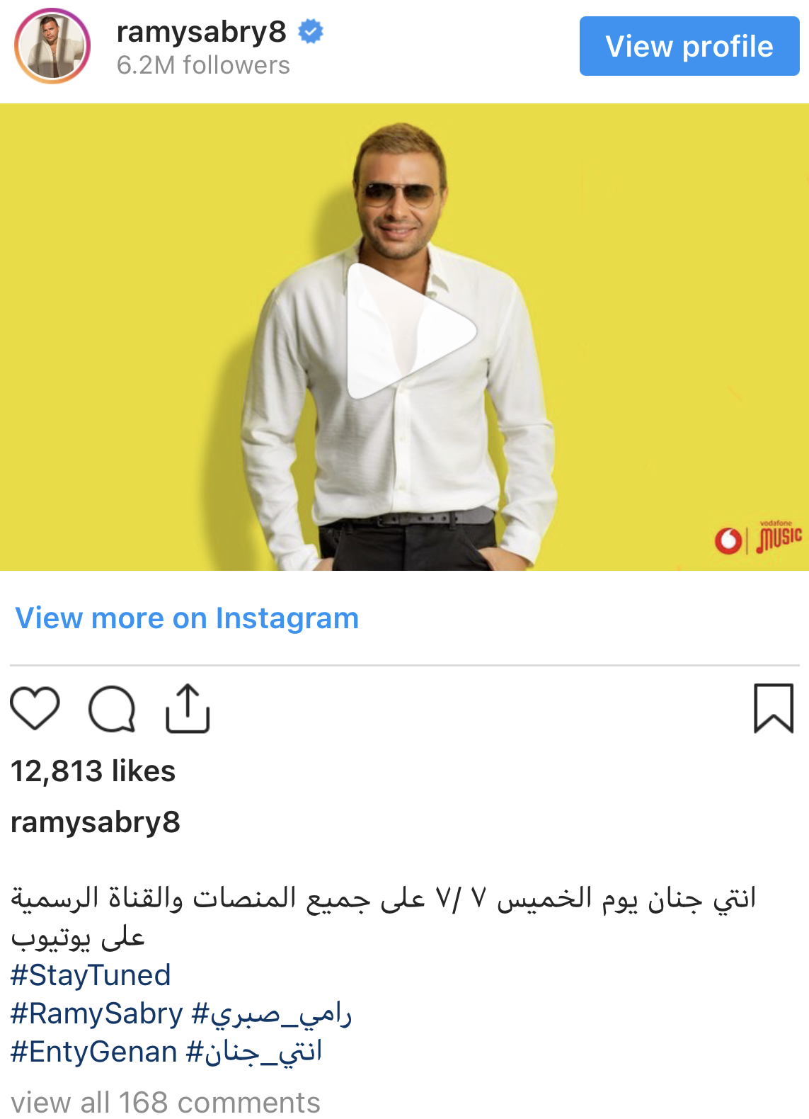 وشارك رامي صبري متابعيه بمقطع من الأغنية، وذلك عبر حسابه الرسمي على موقع انستجرام، وعلق قائلًا: أغنية إنتي جنان يوم الخميس7 يوليو على جميع المنصات وقناة اليوتيوب الرسمية.