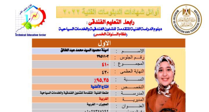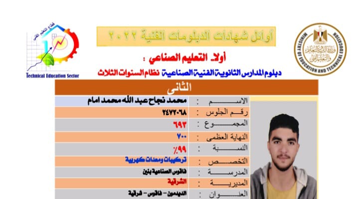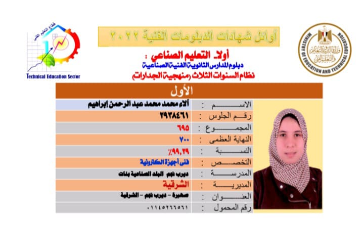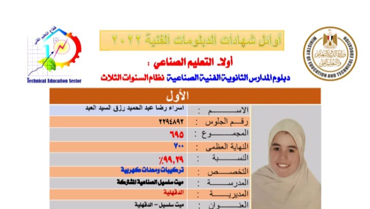 ننشر أسماء أوائل الدبلومات الفنية 2022