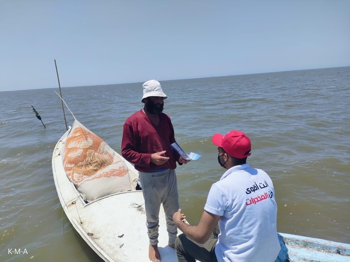 وحرص المتطوعون لدى صندوق مكافحة وعلاج الإدمان والتعاطي على التواجد مع الصيادين وسط النيل ببحيرة البرلس، واستهدفت المبادرة التوعية بأضرار المخدرات وكيفية اكتشاف حالات التعاطي المبكر وأيضا كيفية الوقاية من الوقوع في براثن الإدمان.