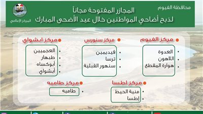 وتستعد شركة مياه الشرب والصرف الصحي بمحافظة الفيوم، من الآن لاستقبال عيد الأضحى المبارك، والذي تفصلنا عنه أيام قليلة.