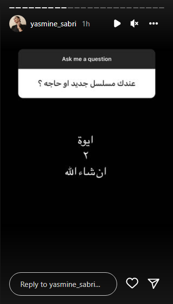 أعلنت الفنانة ياسمين صبري، مشاركتها في عملين جديدين؛ بعد استبعادها من بطولة مسلسل الشادر، للمخرج سامح عبد العزيز، وذلك خلال ردها على أسئلة متابعيها، عبر ستوري حسابها بموقع تبادل الصور والفيديوهات إنستجرام.