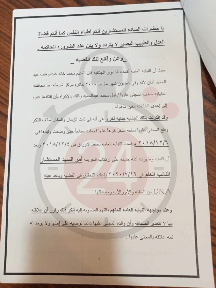 تبرأ من اغتصابها وأنكر ابنته.. ننشر مذكرة الدفاع في قضية أمل فتاة الدقهلية | مستند