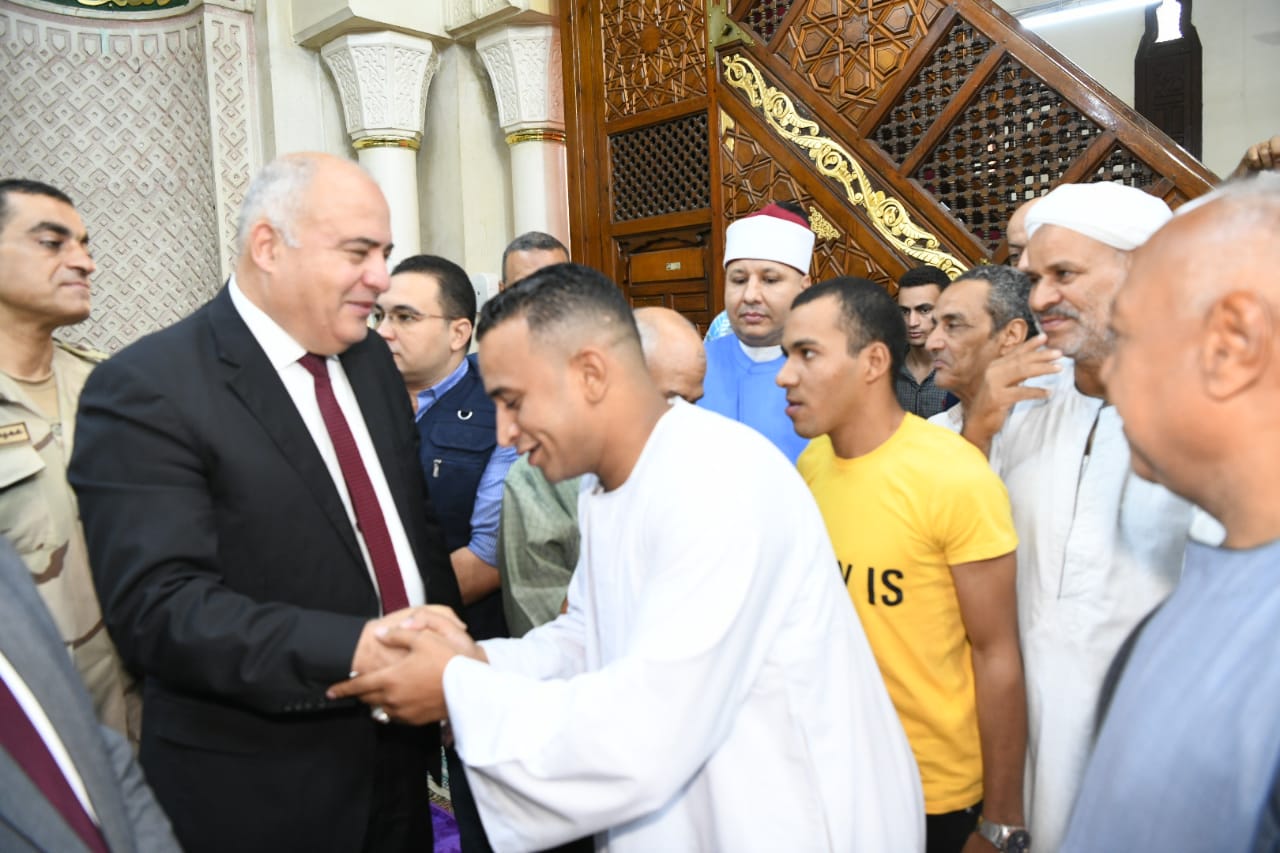كما حرص محافظ قنا على تبادل التهنئة بعيد الأضحى المبارك مع المصلين وسط فرحه وسعادة غامرة.