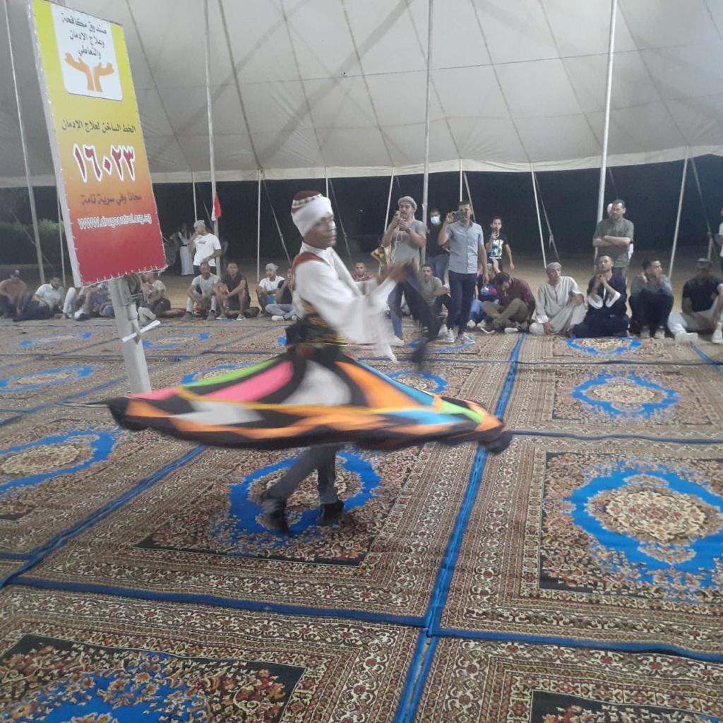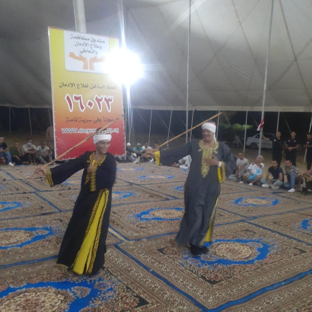 نظم صندوق مكافحة وعلاج الإدمان والتعاطي، برئاسة نيفين القباج، وزيرة التضامن الاجتماعي ورئيس مجلس إدارة الصندوق، حفلات السمر وتنورة ورقص بالعصا وغناء نوبي للمتعافين من الإدمان بـ مراكز العزيمة التابعة للصندوق خلال أيام عيد الأضحى المبارك، وذلك في إطار الحرص على خلق جو أسري للمتعافين وكذلك للمرضى الذين مازالوا يتلقون العلاج داخل المراكز ويتوافق خروجهم خلال أيام العيد، حيث يتم تأجيل خروجهم لحين انتهاء أيام العيد لحمايتهم لمجرد التفكير في العودة للإدمان.