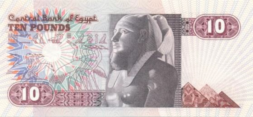العشرة جنيهات التي سبقت العملة البلاستيكية الجديدة تميزت بوجود 3 رموز مستمدة من الحضارة المصرية القديمة، يسيطر فيها تمثال خفرع المنحوت من الديوريت، ووظف في المساحة الخالية عنصريين آخرين لزهرة اللوتس التي تعبر عن الإحياء والبعث.