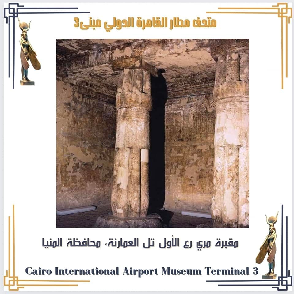 سلط متحف مطار القاهرة الدولي، الضوء على مقابر محافظة المنيا الأثرية، وأهمها مقبرة مري رع الأول وهو أحد كهنة الإله آتون حيث توجد مقبرته بمنطقة تل العمارنة بالمنيا وهو من المشرفين على خزانة الذهب.