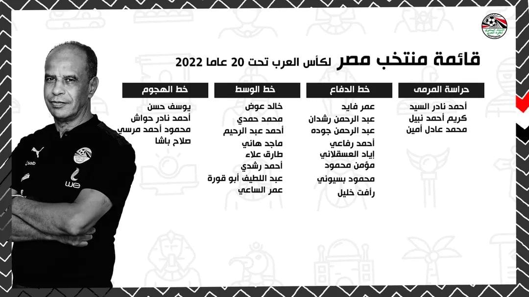 قائمة منتخب مصر لكأس العرب تحت 20 عاما 2022