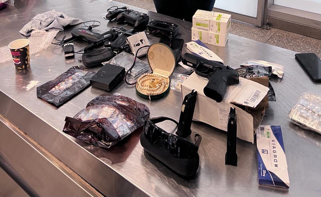 ضبط راكب بجمارك مطار القاهرة الدولي بحوزته طبنجة وطائرات ونظارات تصوير وشرائط ترامادول وبذور ماريجوانا | صور