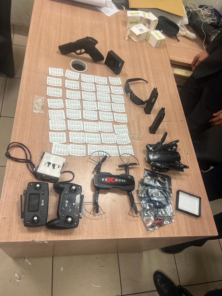وقد اسفر التفتيش عن ضبط طبنجة واثنين خزنة خاصتين بها، واثنين طائرة مزودين بكاميرات تصوير بالريموتات الخاصة بها و25 ريشه اضافية خاصة بالطائرتين وكاميرا مراقبة علي شكل دبوس جاكيت ونظارة شمسية مزودة بكاميرا للتصوير ونظارة ميدان افاد تقرير المقدم عمرو نجم من ادارة شرطة الخدمة المدنية(المفرقعات) انهم محظور حيازتهم طبقا للقانون ارقام 216 لسنة 2017 ولقرار الحاكم العسكري رقم 3 لسنة 1998 و كاميرا صغيرة لتصوير المستندات افاد التقرير انه يلزم لدخولها البلاد الحصول على تصريح من مصلحة الامن العام و8 كروت ذاكرة كما تم ضبط 40 شريط من عقار الترامادول المخدر باجمالي 400 قرص و20 بذرة لنبات الماريجوانا المخدر و3 انبوبة زجاجية تستخدم في تعاطي المخدرات، شارك في الضبط كل من السيد احمد موسي ونورهان محمد فؤاد مامورا الجمرك وتامر عادل رئيس القسم.