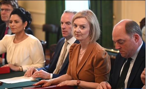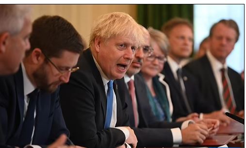 وأفادت صحيفة ديلي ميل البريطانية، بأن جونسون كان يجلس في آخر اجتماع له في مقابل ليز تراس وزيرة الخارجية الحالية، والمرشحة لقيادة حزب المحافظين، وبالتالي المرشحة لمنصب رئيس الوزراء المقبل.