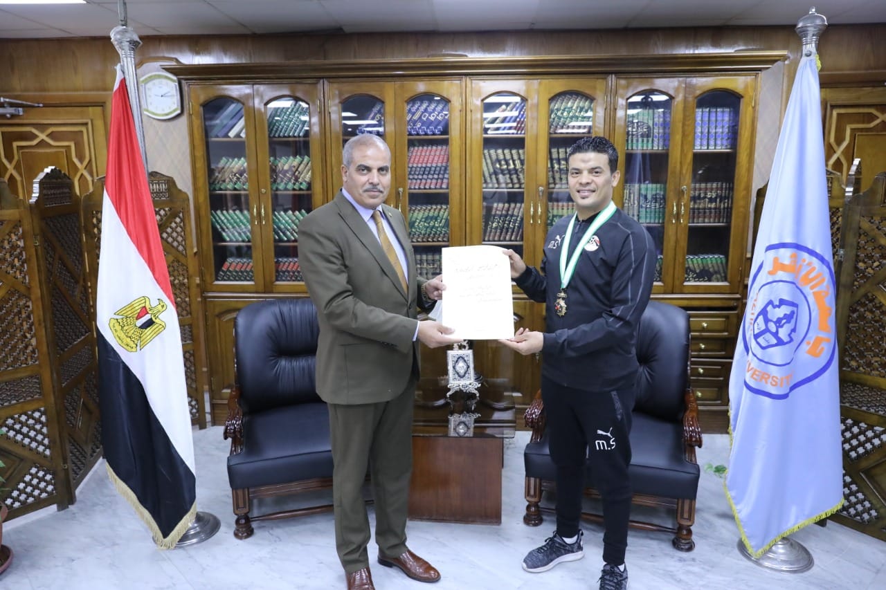 رئيس جامعة الأزهر يشيد بجهود ابن كلية التربية الرياضية لحصوله على وسام الجمهورية