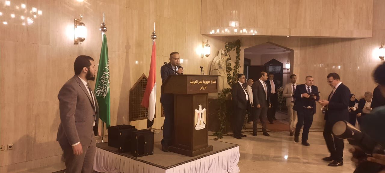 وافتتح الحفل، السفير أحمد فاروق سفير مصر بالمملكة العربية السعودية، بعزف السلام الوطني لجمهورية مصر العربية في حضور الأمير محمد بن عبدالرحمن بن عبدالعزيز آل سعود أمير مدينة الرياض بالإنابة، وحضور العديد من وفود سفارات دول العالم بالمملكة العربية السعودية والعديد من أبناء الجالية المصرية بالخارج والعديد من الشخصيات العامة السعودية.