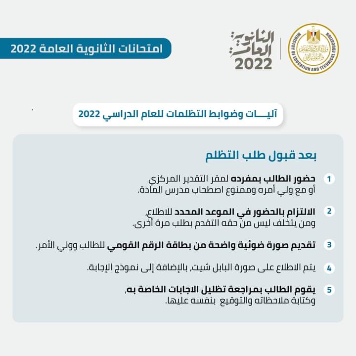 آليات تقديم التظلمات لطلاب الثانوية العامة 2022