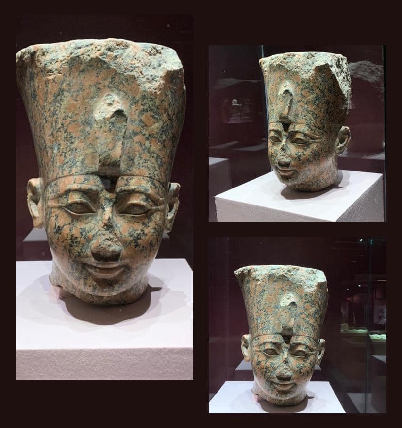 ونشر متحف الغردقة؛ مجموعة من الصور الخاصة بالقطعة الأثرية، ويظهر فيه الملك يرتدي التاج الأحمر تاج مصر السفلي، والذي كان يوضع به تاج مصر العليا الأبيض، كرمز لوحدة البلاد، ويحمل التاج أيضًا الصل الملكي على هيئة الكوبرا الحامية للملوك.