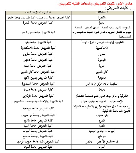 11. كليات التمريض والمعاهد الفنية للتمريض.