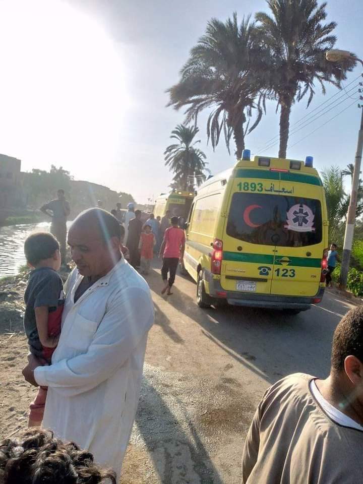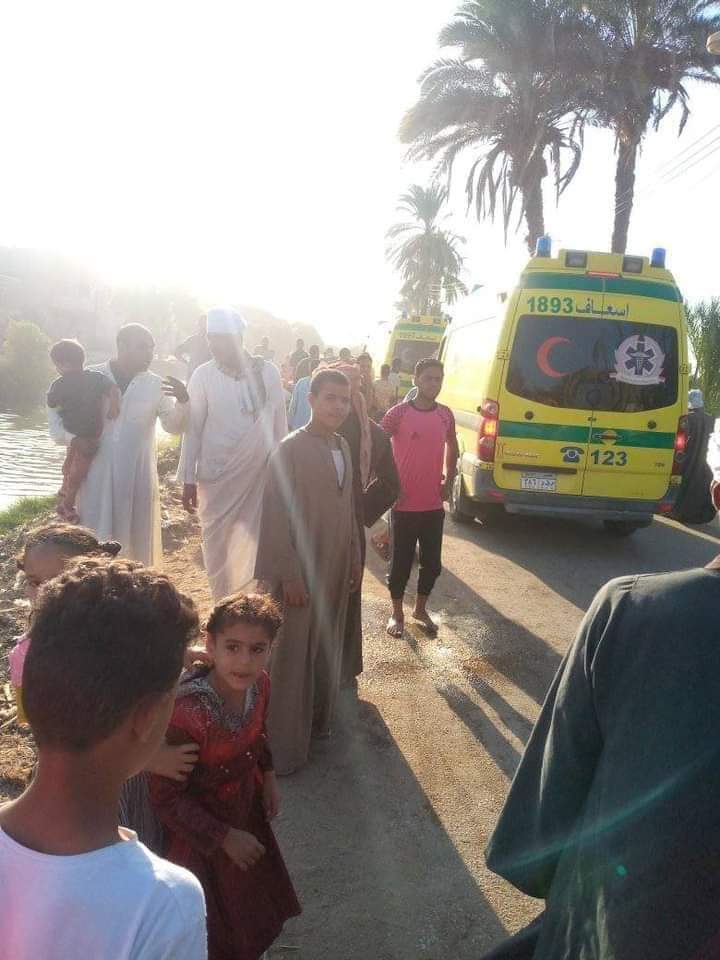 إصابة 4 أشخاص في حادث سقوط سيارة داخل مياه إحدى الترع بسوهاج | صور