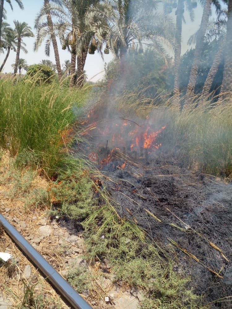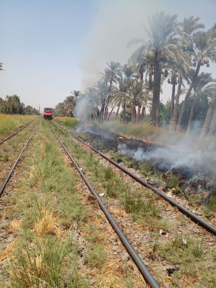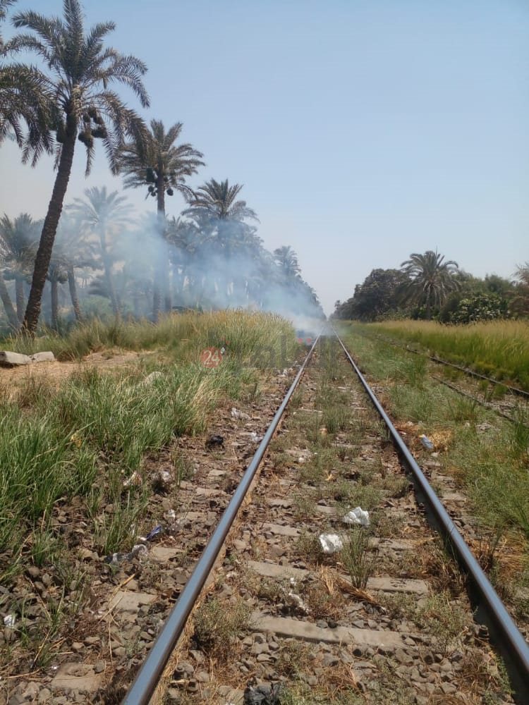 قائد قطار ومساعده يسيطران على حريق نشب بجوار القضبان بمنطقة المرازيق بالجيزة | صور