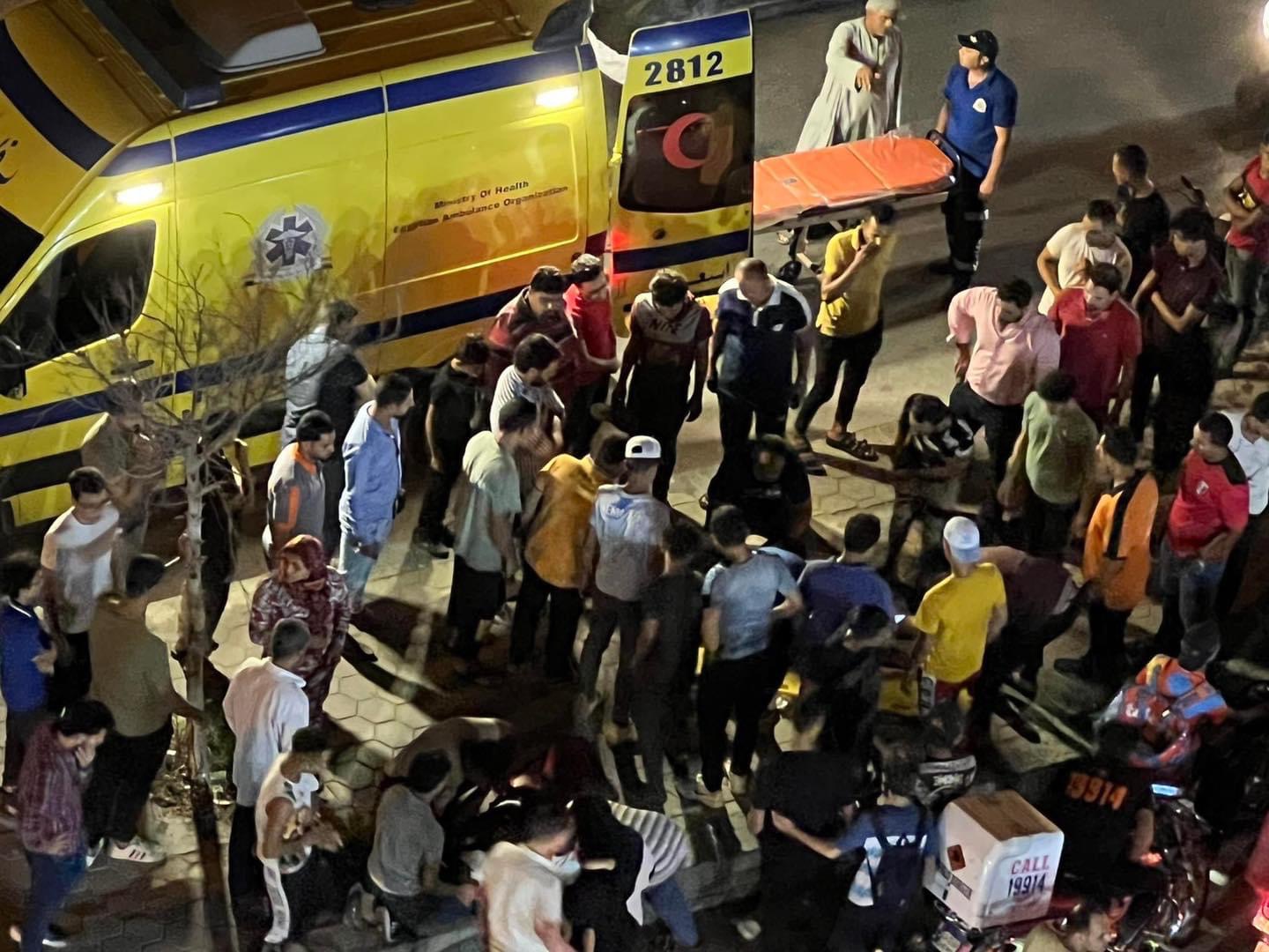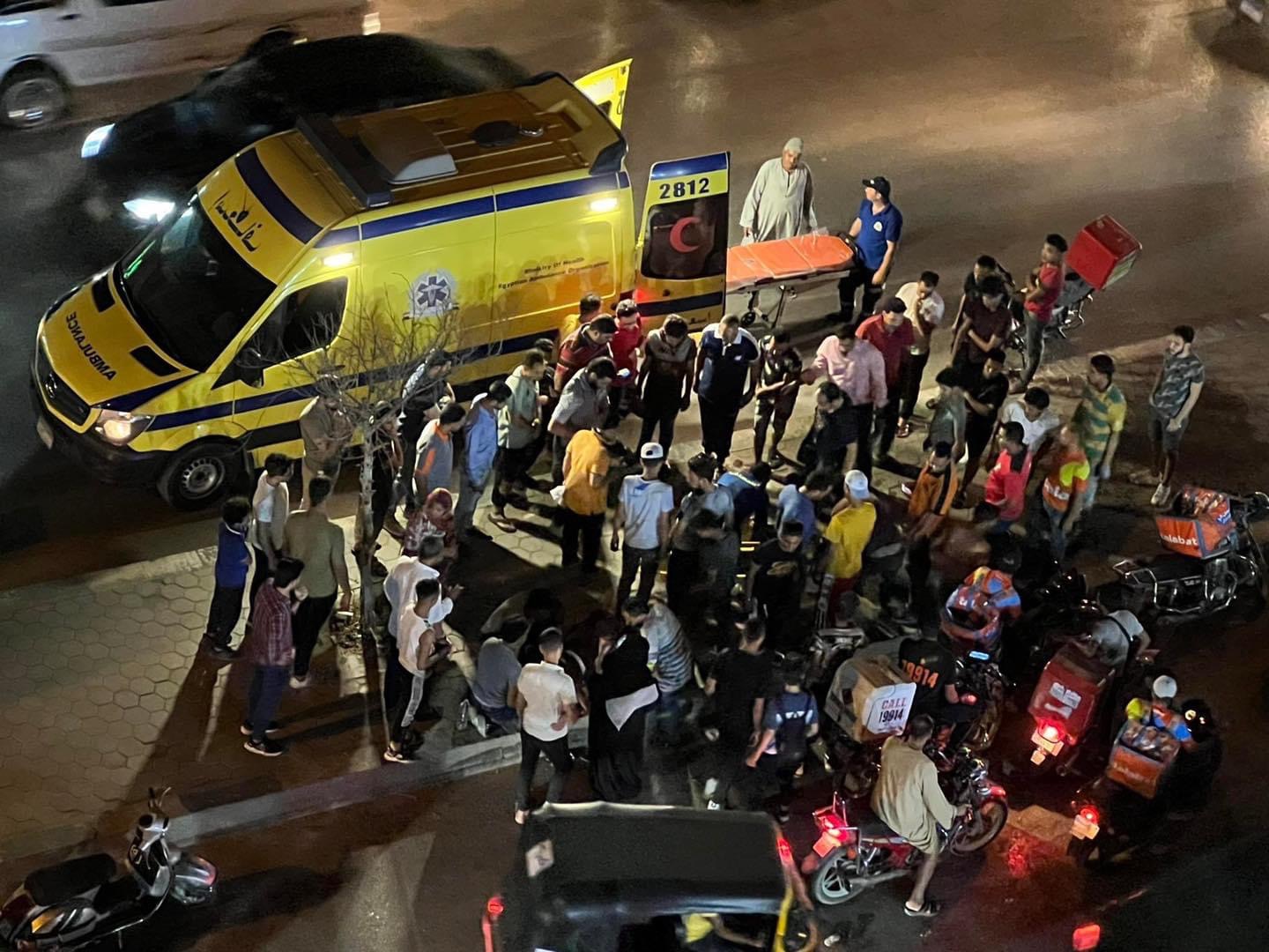 حيث التقط شهود العيان بعض الصور التي رصدت محاولة رجال الإسعاف إنقاذ السيدة وطفليها، ونقلهم إلى المستشفى لتلقي العلاج اللازم.