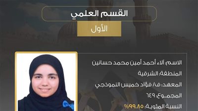 وأشارت والدة السادسة على الثانوية الأزهرية القسم الأدبي، إلي أنها كانت تتوقع أن تكون نجلتها بين الأوائل، حيث كانت ترافقها دعوات الأم طوال فترة دراستها حيث كانت متفوقة منذ الصغر، موضحة أن جميع أبنائها من المتفوقين دارسيا في الأزهر، وحصلوا على مجاميع مرتفعة خلال فترة دراستهم وكانوا جميعا في القسم الأدبي.