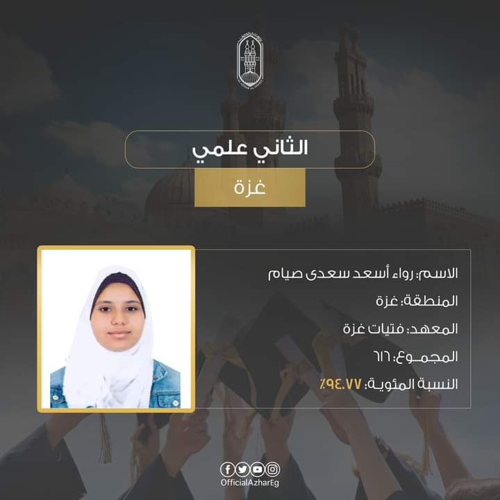 ننشر صور وأسماء أوائل الشهادة الثانوية الأزهرية علمي وأدبي بمعاهد فلسطين للعام 2022