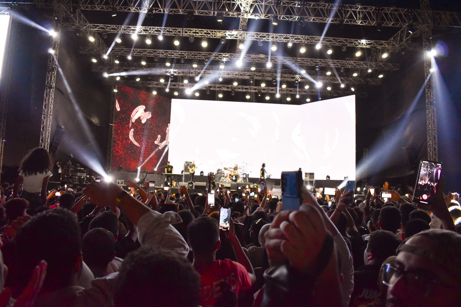 صعد الفريق علي خشبة المسرح مؤديًا أغنية: هاتلنا بالباقي لبنان، وسط تفاعل وهتافات الآلاف ممن انتظروهم لقرابة الـ6 ساعات، بعدها قام أمير عيد مطرب الفريق بتحية الجمهور، ثم واصلوا فقرتهم الغنائية بعدد كبير من أغانيهم المميزة، ومنها: السكة شمال، يا أبيض يا أسود، مهما طال طريقك، غمض عينيك، كان لك معايا، يلا نغني، ساموراي، أنا السجارة، غريب في بلاد غريبة، وغيرها من الأغاني التي قدمها تلبية لرغبات الجمهور.
