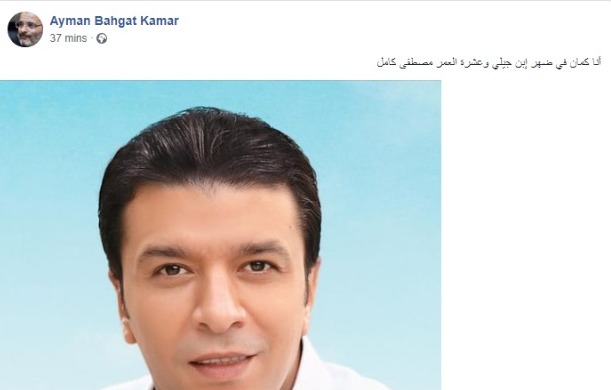 وشارك أيمن بهجت قمر صورة لـ مصطفى كامل عبر حسابه الرسمي على موقع فيسبوك، وعلق قائلًا: أنا كمان في ضهر ابن جيلي وعِشرة العمر مصطفى كامل.