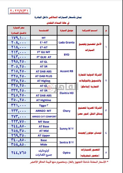 وفيما يلي رصد بأحدث قائمة أسعار سيارات مبادرة الإحلال،وفقًا للنسخة التي حصل القاهرة 24 على نسخة منها، حيث جاءت على النحو التالي: