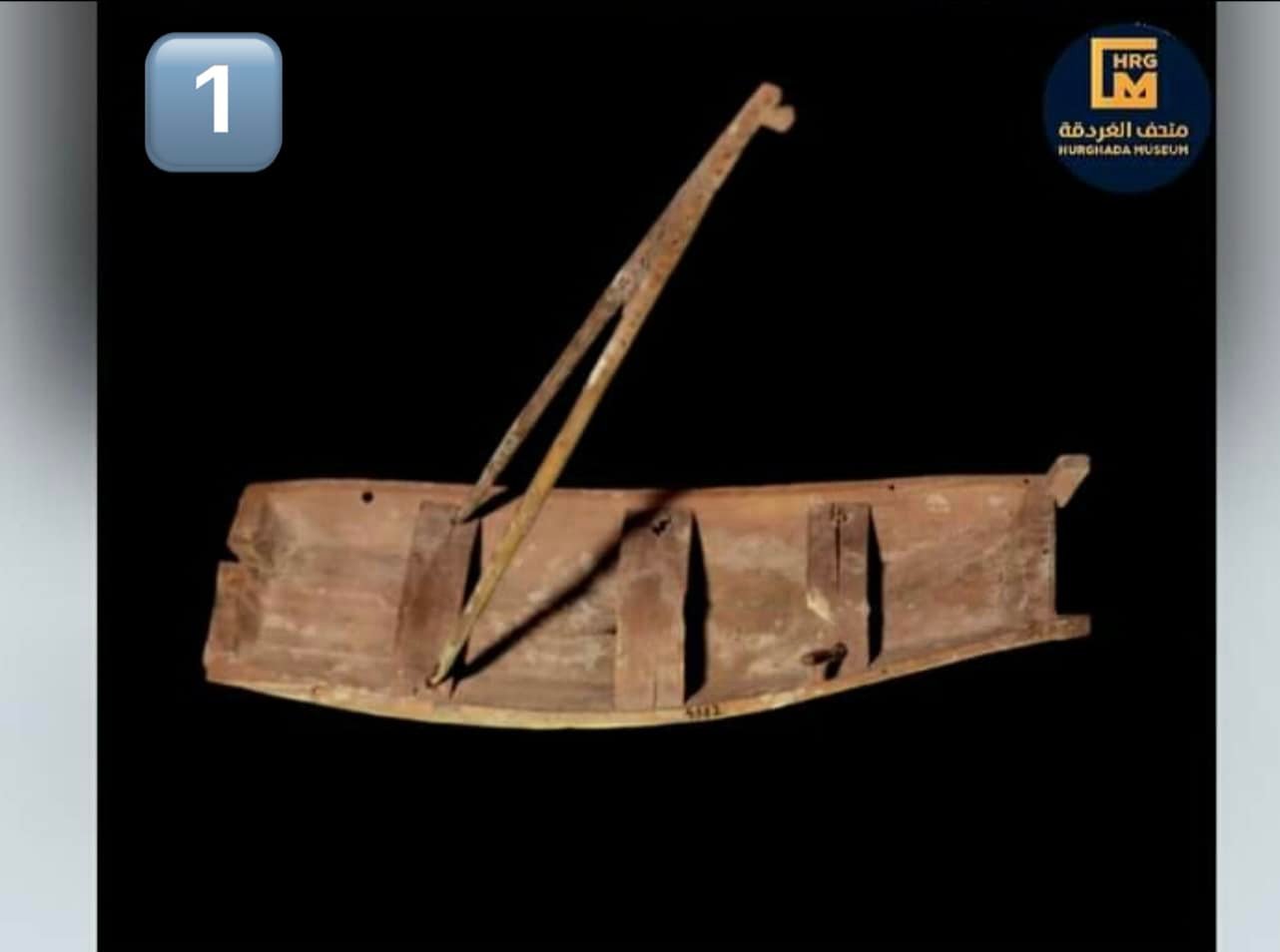 ونشر متحف الغردقة؛ صور خاصة بالقطعة الأثرية، والقطعة الأولى عبارة عن نموذج لجسم قارب خشبي، وذلك نظرًا لوجود نهر النيل والذي يمتد من الجنوب إلى الشمال ويمثل شريان الحياة، حيث اهتم المصريين القدماء بصناعة القوارب الخشبية من خشب السنط المحلي أو خشب الأرز المستورد من لبنان.