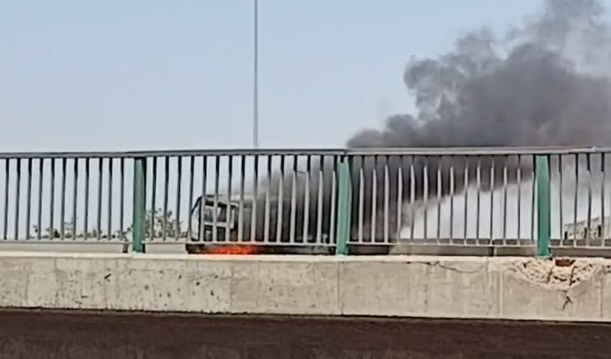 والتقط شهود العيان مقطع فيديو، رصد اندلاع النيران بسيارة ميكروباص، بجوار السور الحديدي للطريق الدائري.