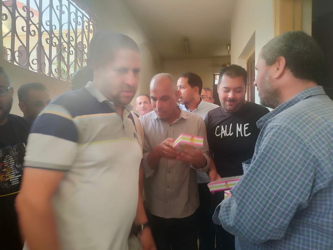 رئيس مدينة دمنهور يوزع الحلوى على موظفي الوحدة المحلية بمناسبة عاشوراء