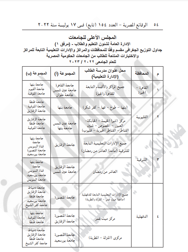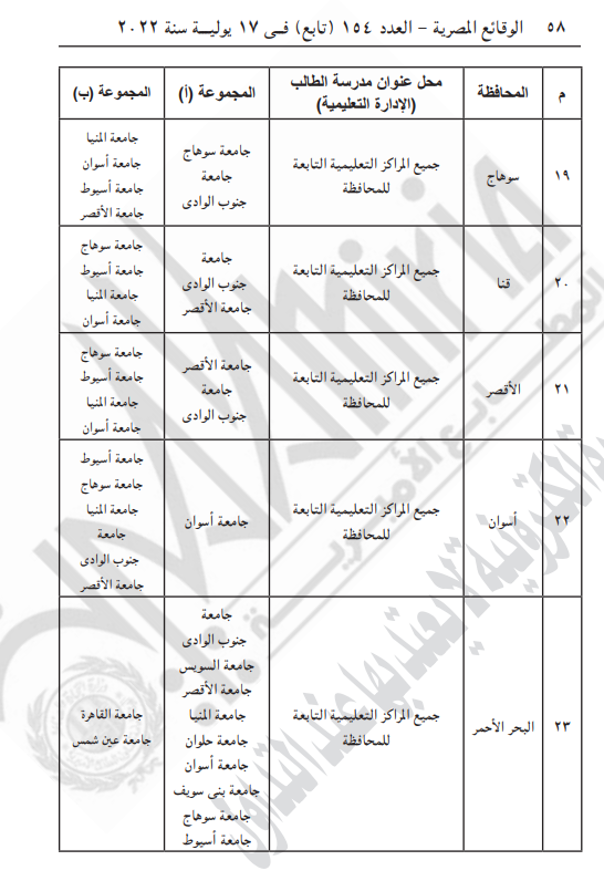 تنسيق الكليات 2022 المرحلة الأولى.. قواعد التوزيع الجغرافي