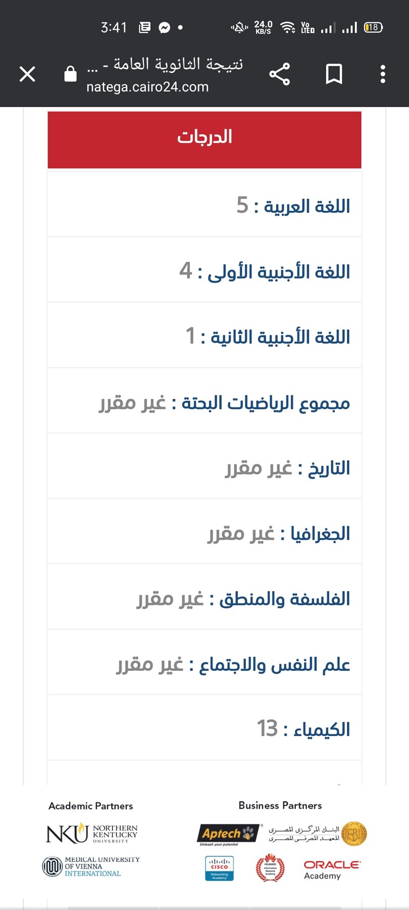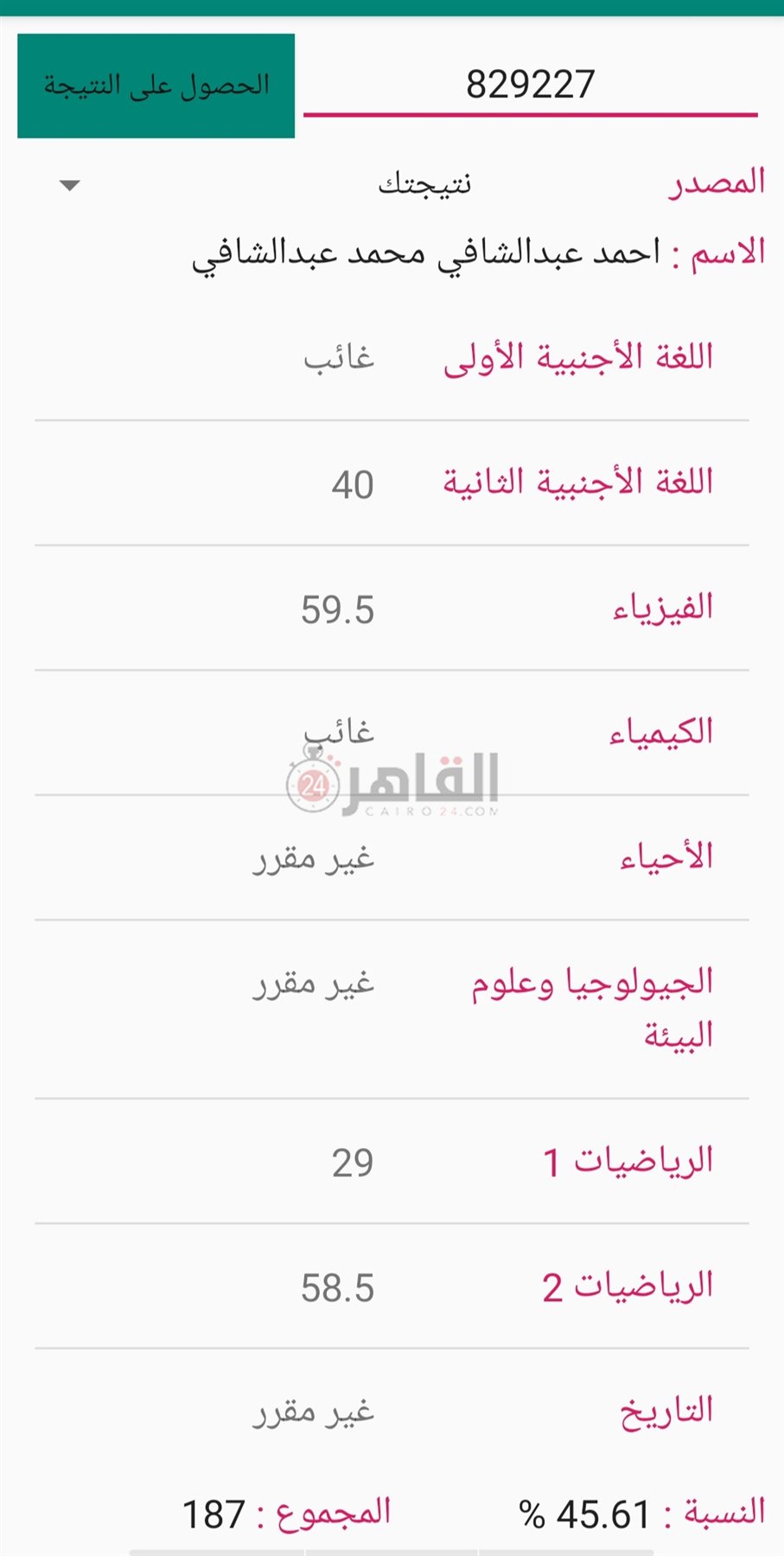 ولفتت إلى أنها عندما بدأت خطوات معرفة النتيجة؛ حمَّلت تطبيق نتائج الثانوية العامة على الهاتف المحمول، وعندما وضعت رقم جلوسها؛ وجدت النتيجة باسم طالب آخر- في شعبة علمي رياضة، رغن أنها في شعبة علمي علوم.