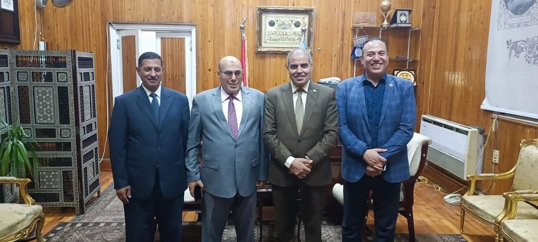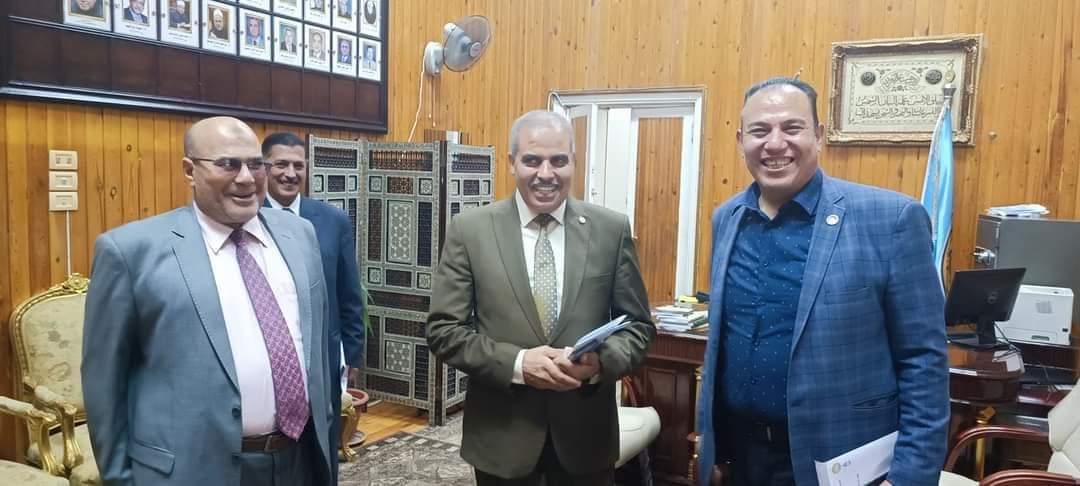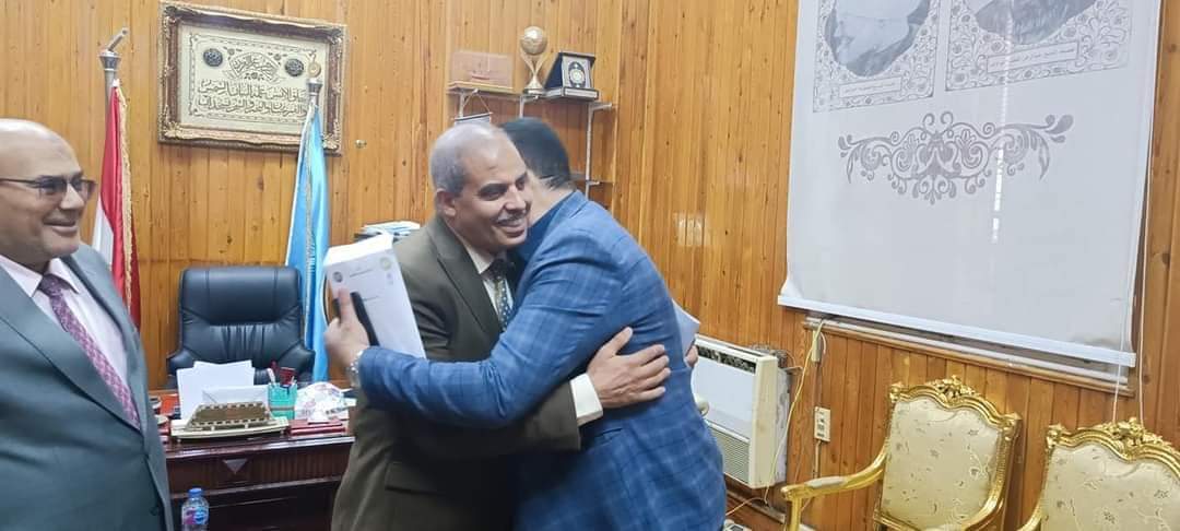 كان في استقبال الدكتور محمد المحرصاوي كل من الأستاذ الدكتور صلاح عاشور، عميد الكلية، والأستاذ الدكتور غانم السعيد، عميد الكلية السابق.