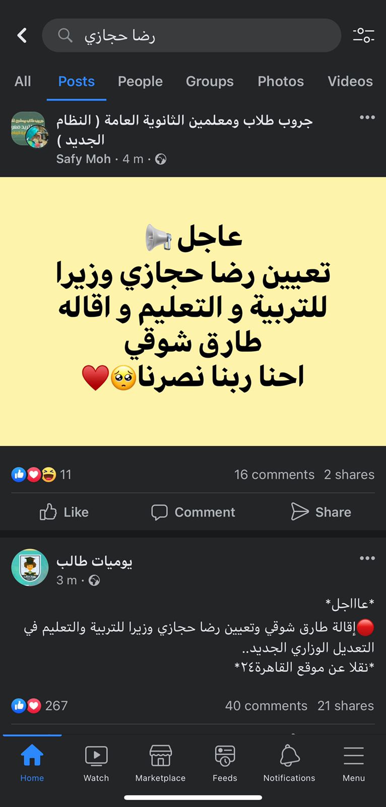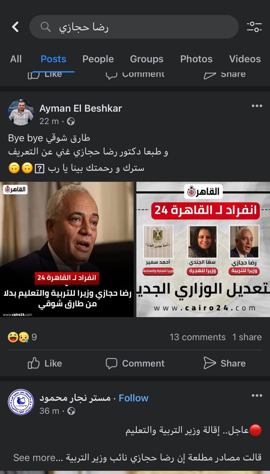 فيما لاقى اختيار الدكتور رضا حجازي وزيرًا للتعليم، ردود فعل إيجابية من مستخدمي مواقع التواصل الاجتماعي، وذلك بعد وجود شكاوى عديدة في ملف التعليم خلال السنوات السابقة.
