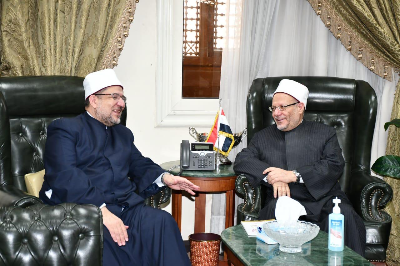 مفتي الجمهورية يستقبل وزير الأوقاف للتهنئة بالتجديد له لمدة عام