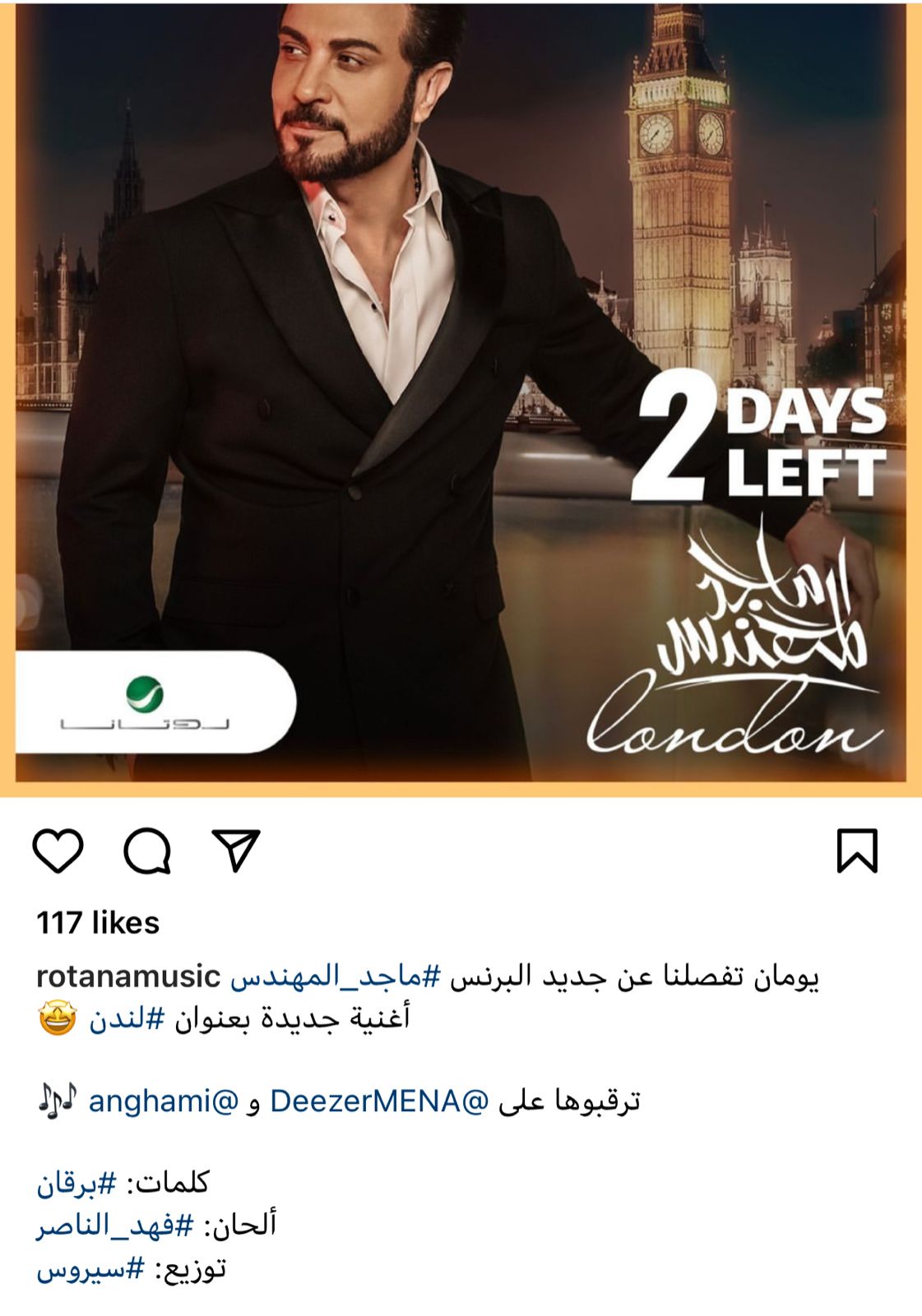 ونشر أدمن الشركة المنتجة للأغنية عبر الحساب الرسمي لهم بموقع انستجرام البوستر الرسمي لأغنية لندن، وعلق قائلًا: يومان تفصلنا عن جديد البرنس ماجد المصري وأغنيته لندن، من تأليف برقان، ألحان فهد ناصر وتوزيع سيروس.
