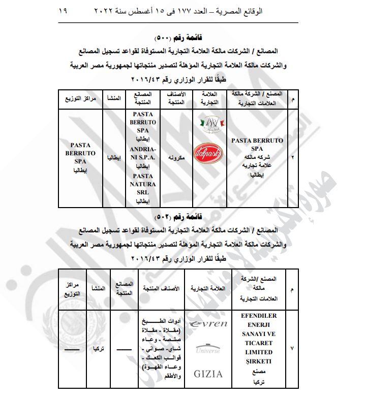 وتعمل الشركات التي تم قيدها في عدد من القطاعات، منها قطاعات المنتجات الغذائية والمكرونة وصناعة الأدوات المنزلية والمفروشات والأواني.