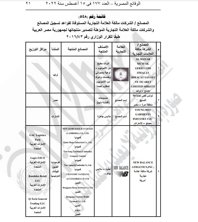 وافقت الهيئة العامة للرقابة على الصادرات والورادات، التابعة لوزارة التجارة والصناعة، على قيد شركات جديدة للتصدير إلى السوق المحلي المصري.