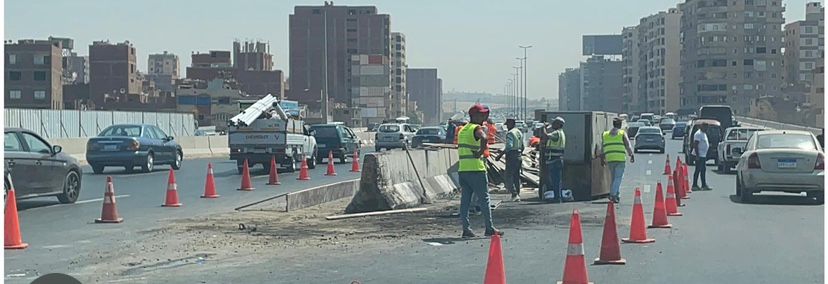 الطرق والكباري: وضع لوحات إرشادية بوجود حاجز خرساني وسط الطريق الدائري بالأوتوستراد
