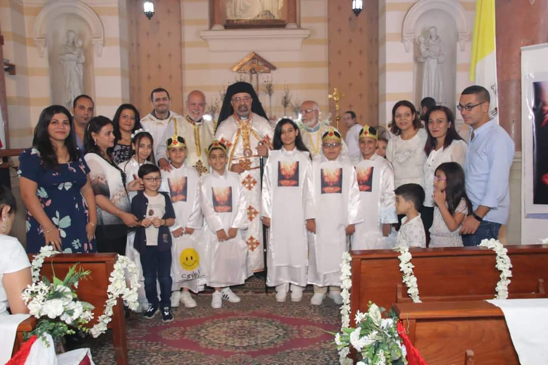 ترأس الأنبا إبراهيم إسحق، بطريرك الإسكندرية للأقباط الكاثوليك، قداس المناولة الاحتفالية لعدد من أبناء وبنات كنيسة العائلة المقدسة بالمطرية.
