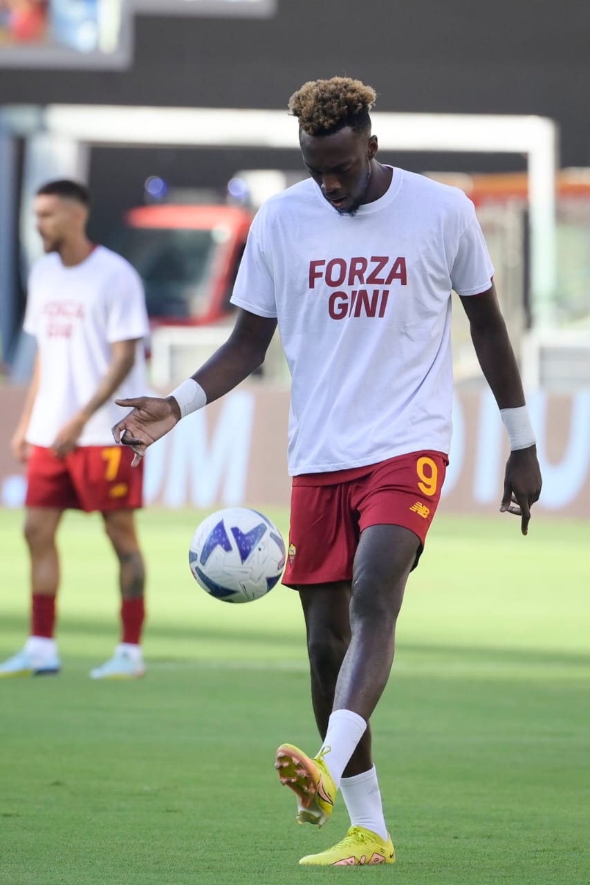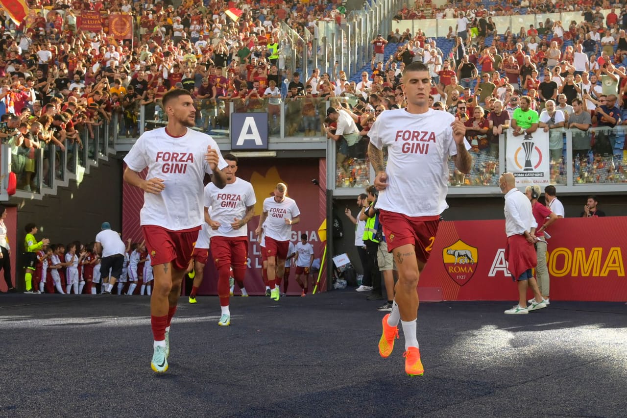 وارتدى لاعبي روما، قميص لدعم الدولي الهولندي جيورجينهو فينالدوم، بسب إصابته القوية بكسر في الساق.