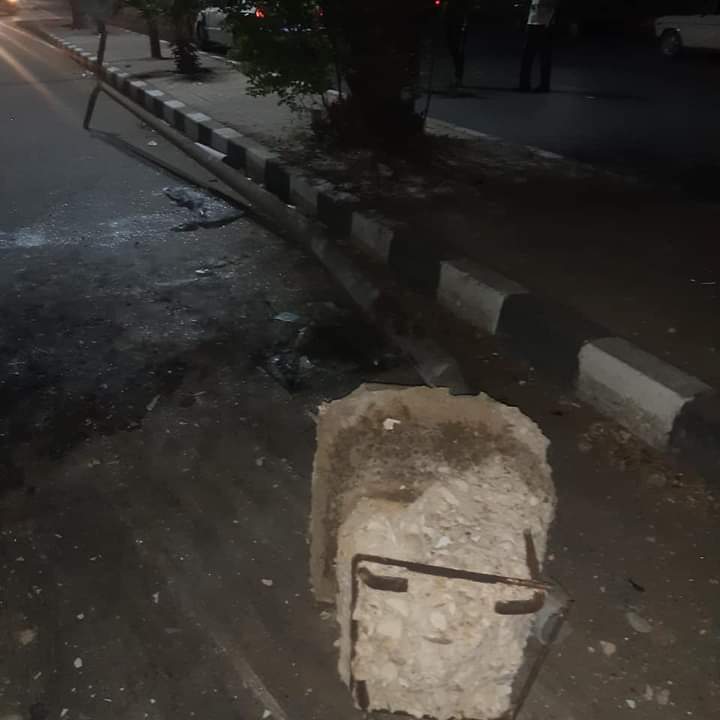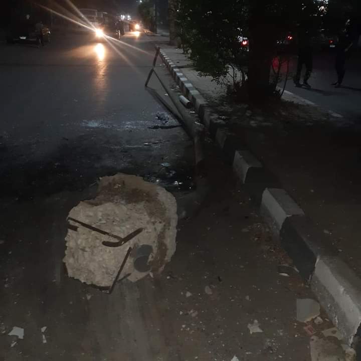 حادث تصادم سيارة ملاكي بعمود إنارة