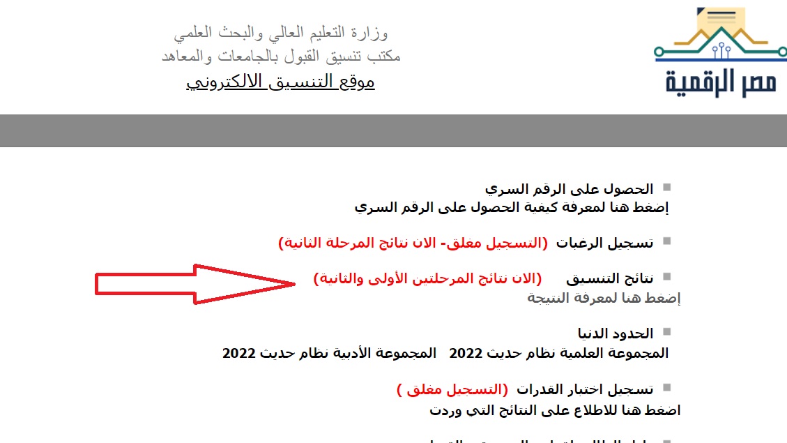 خطوات الاستعلام عن نتيجة تنسيق المرحلة الثانية 2022