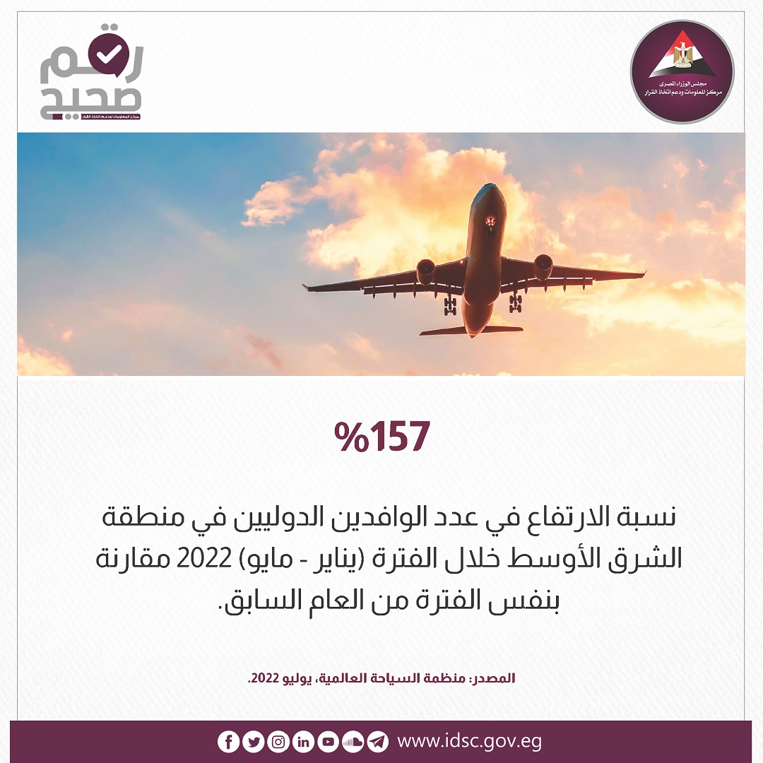 مركز معلومات مجلس الوزراء: ارتفاع عدد الوافدين الدوليين في قطاع السياحة بالشرق الأوسط|انفوجراف