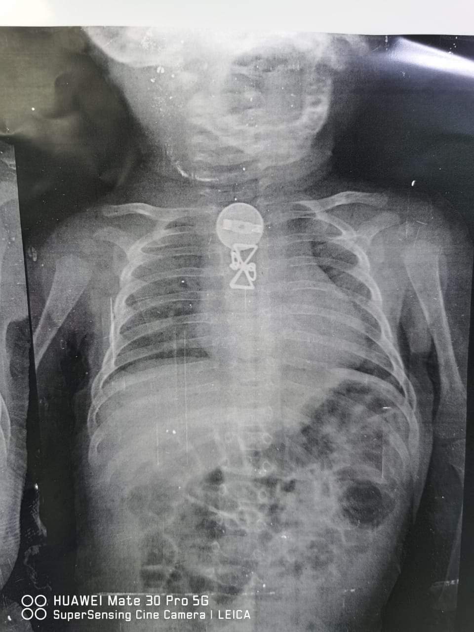 وأشار رئيس الفريق الطبي، في بيان صدر اليوم، إلى أن المستشفى استقبل الطفل وكان يعاني من ضيق في التنفس وتم حجزه بالمستشفى وعمل الإشاعات اللازمة وتبين وجود جسم معدني داخل الجسد واستخراجه، وتم العرض على والديه الذين أقروا أن شقيقته الكبرى كانت تداعبه وبلع تلك الجسم المعدني منذ فترة.