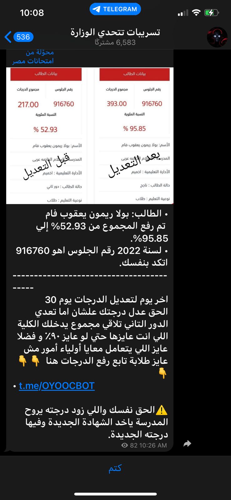 فيما علّق مصدر مطلع بوزارة التربية والتعليم، على ما تداوله عبر تيليجرام، قائلا: ليس لها أساس من الصحة، إذ أن الطلاب انتهوا بالفعل من أداء الامتحانات وحاليًا تنتهي مراحل التنسيق، ولا مجال لأي أحد أن يكون لديه القُدرة على تعديل درجات طالب، كما يزعم شاومينج.